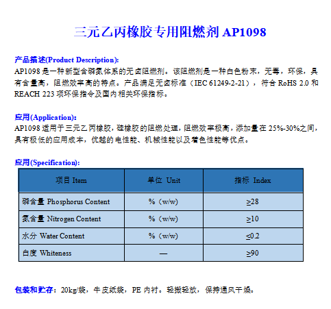 三元乙丙橡膠專用阻燃劑AP1098 2022-4-18 本文被閱讀 3142 次