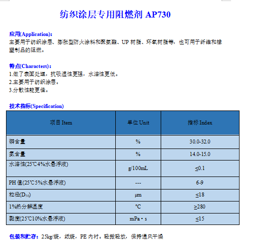 紡織品涂層專用阻燃劑AP730 2022-5-26 本文被閱讀 3443 次